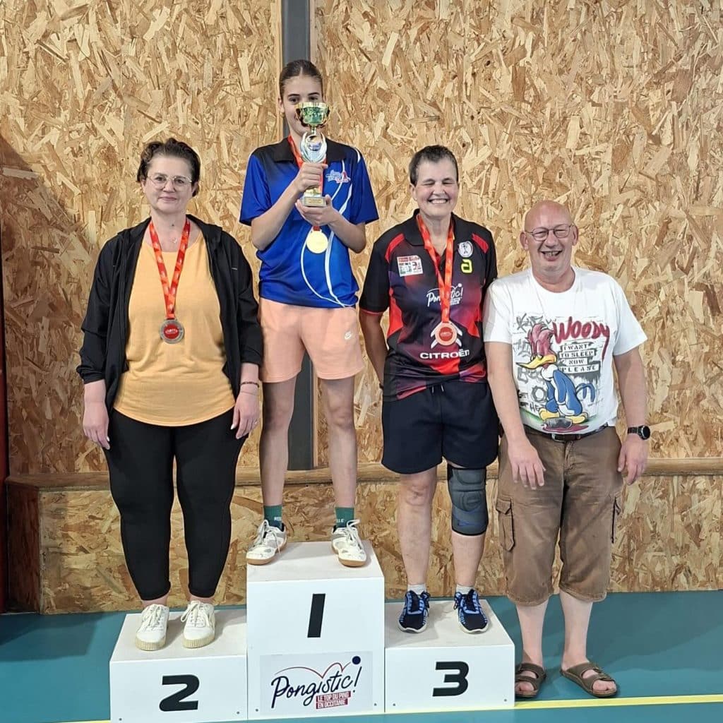 Félicitations à Eva MALEVILLE du Castres TTT qui remporte le tableau F7, suivi de Valérie BLANC du Ping St Paulais Pays de Cocagne.